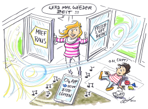 Arbeiten Menschen in schlecht oder nicht belüfteten Büros, steigt die Wahrscheinlichkeit einer Infektion, selbst wenn der Mindestabstand von 1,5 Metern zwischen den Beschäftigten eingehalten wird. Um effektiv zu lüften, gibt es zwei Möglichkeiten: Das freie Lüften und die technische Lüftung. Bei Letzterer gelangt über raumlufttechnische Anlagen (RLT-Anlagen) kontinuierlich gefilterte Frischluft von außen in die Innenräume. Bei der freien Lüftung ist die Stoßlüftung mit weit geöffneten Fenstern und am besten auch mit geöffneten Türen am effektivsten. Stoßlüften belastet auch nicht die Energiebilanz. Wenn im Winter in regelmäßigen Abständen für drei Minuten richtig stoßgelüftet wird, ist der Verlust an Heizenergie minimal. Eine Lüftung über ein dauerhaft gekipptes Fenster sei hingegen nicht empfehlenswert.