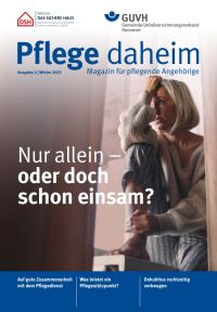 Das Magazin „Pflege daheim" erscheint zwei Mal jährlich und liefert Informationen, die den Alltag für pflegende Angehörige erleichtern können.